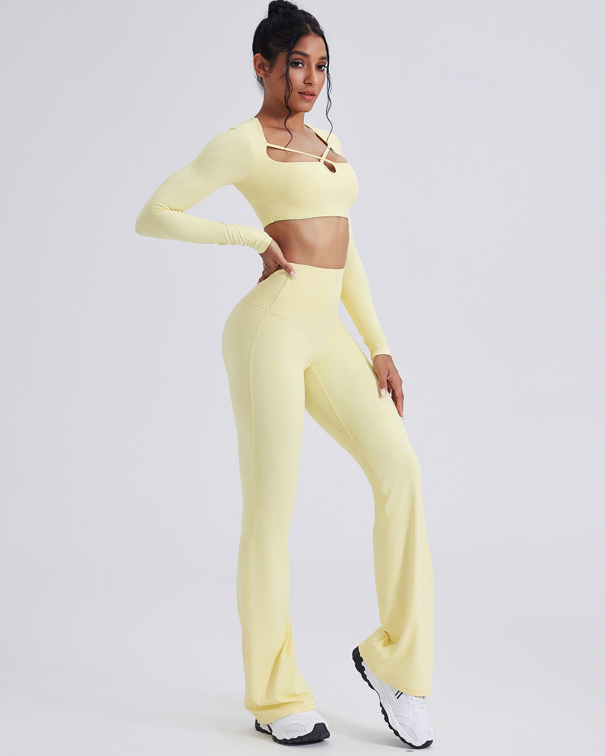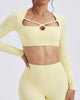 Crafted from ultra-soft, stretch-knit fabric, the Elise Long Sleeve offers unrestricted mobility while maintaining a breathable, second-skin feel. Its smooth texture and moisture-wicking capability keep you cool and dry, even through your most intense sessions. Long sleeves provide light coverage for cooler days, while the cropped length ensures balance and freedom in every move.