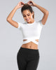 Featuring a tummy cross rib band that accentuates your waistline making you look slim. A classic crew neckline with a tailored fit through the bodice and sleeves, this sports essential is made from premium quality, super soft fabric.